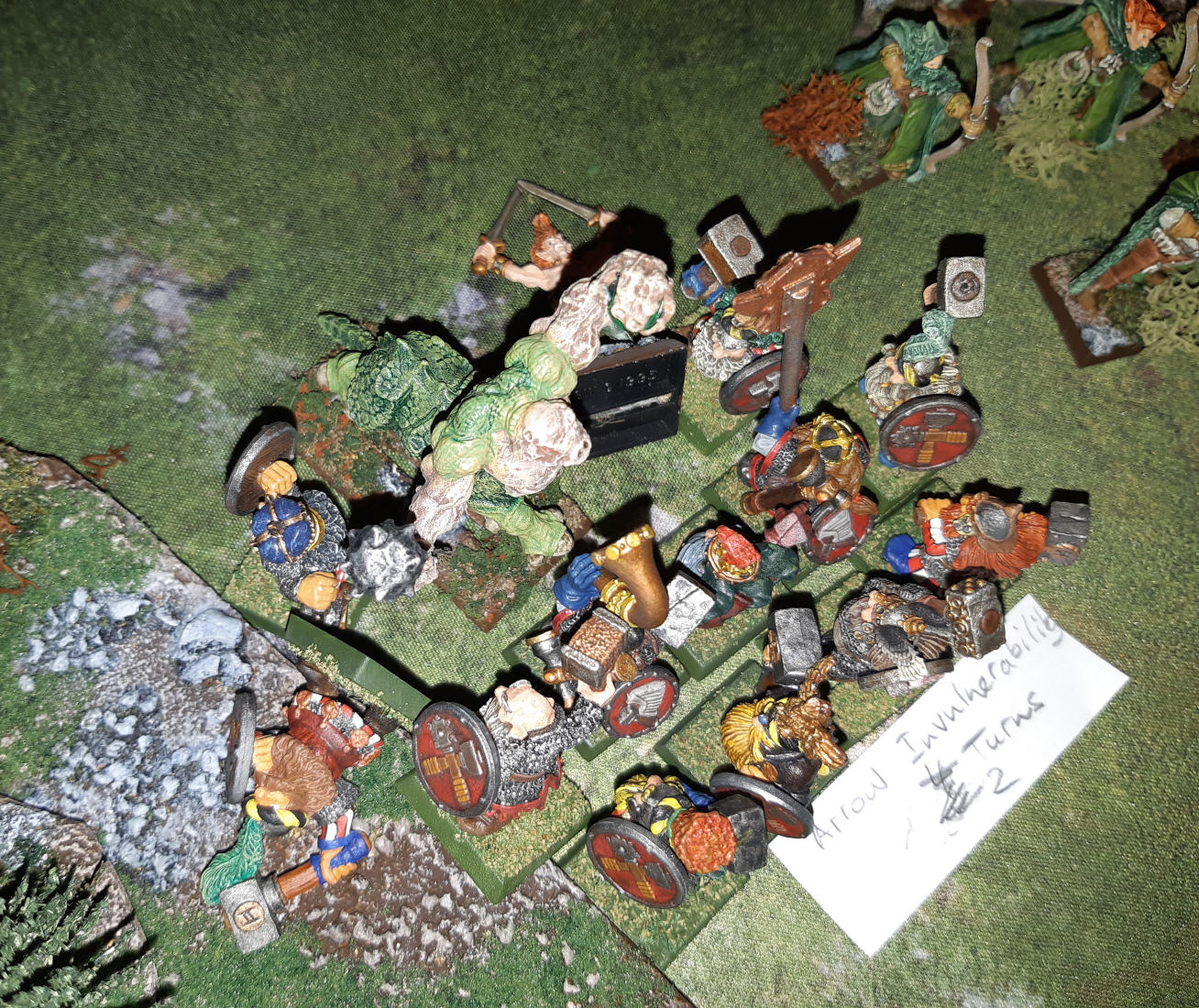 The leaders of the Wood Elf army finally manages to cause heavy losses to the Ironbreakers unit: their leader - Durgrom Korganson - is killed and so are two other fighters.