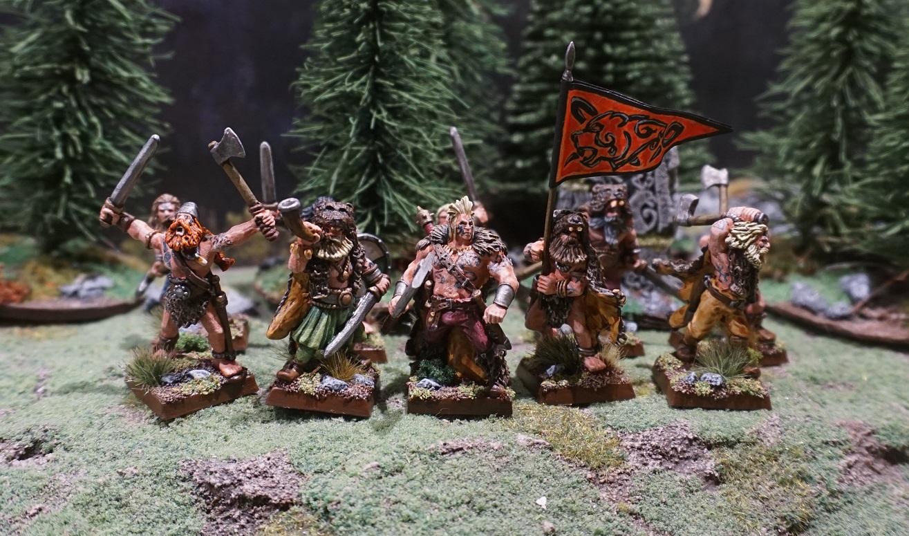 The Ogres can be hired by many different armies. Three of them are classical Jes Goodwin sculpts and the standard bearer is a Marauder mini. The two other (the paymaster and his bodyguard) are from Red Bard Games.
